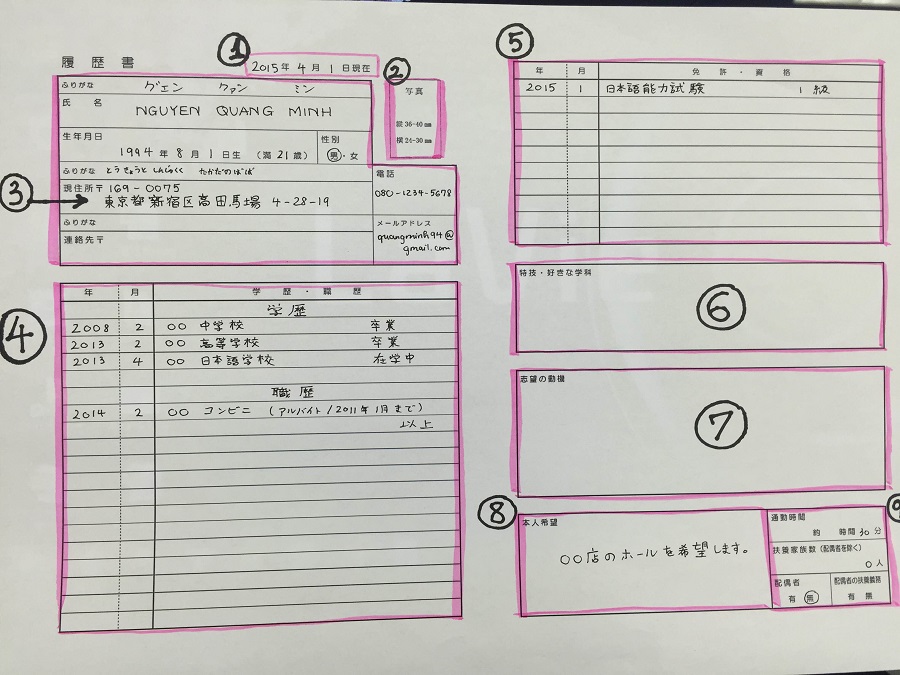 I. Cách viết hồ sơ xin việc làm thêm tại Nhật Bản: 履歴書